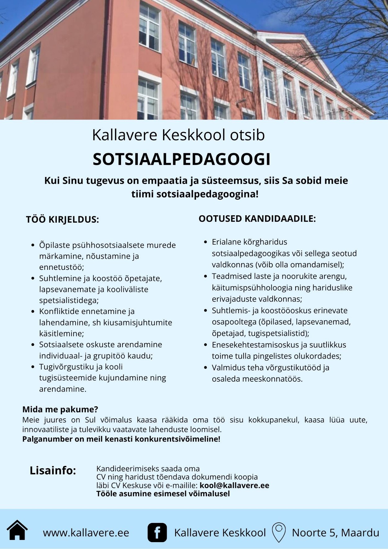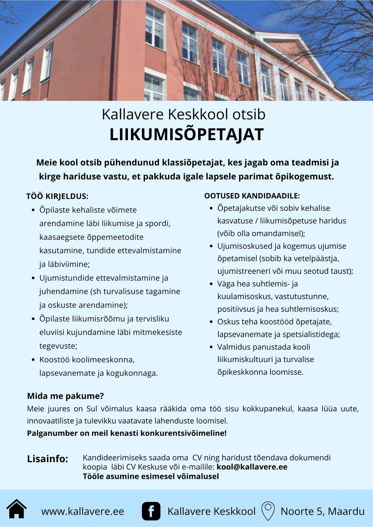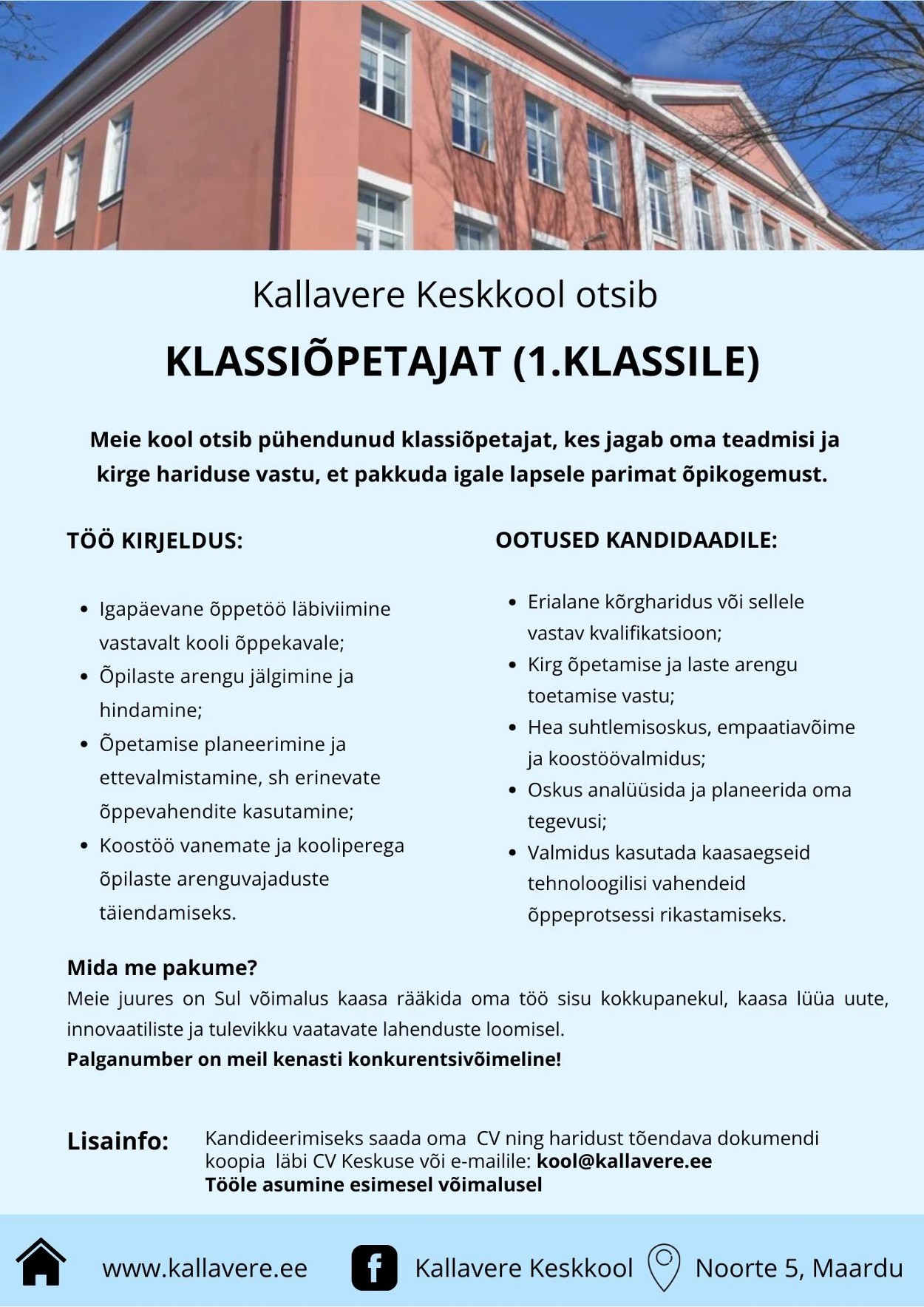 Kallavere Keskkooli tööpakkumised
