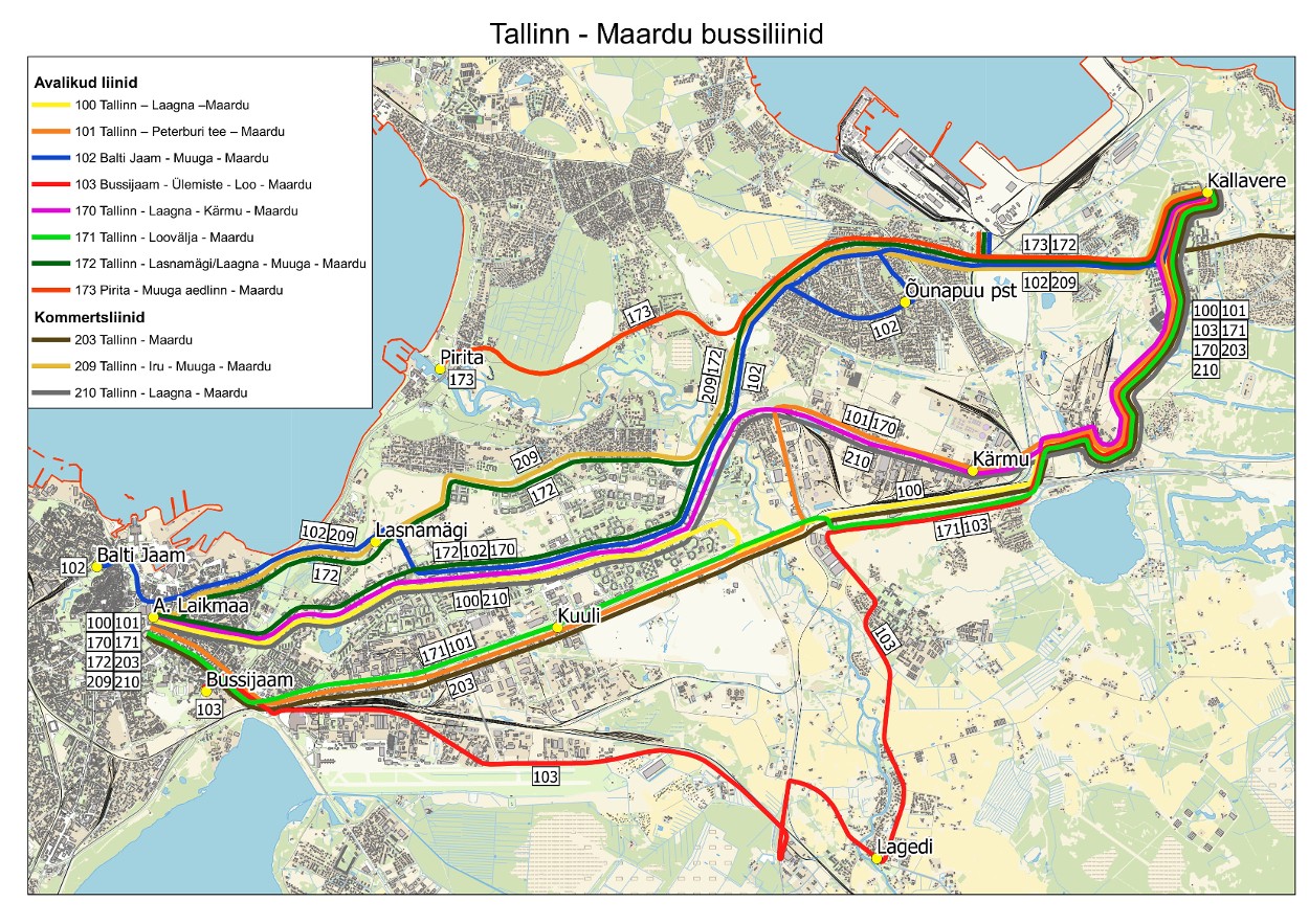 - nr 103 Tallinn (peatus Bussijaam) – Ülemiste – Lagedi – Loo – Maardu